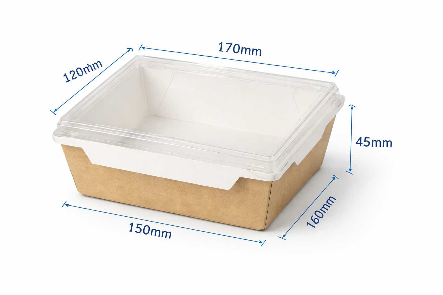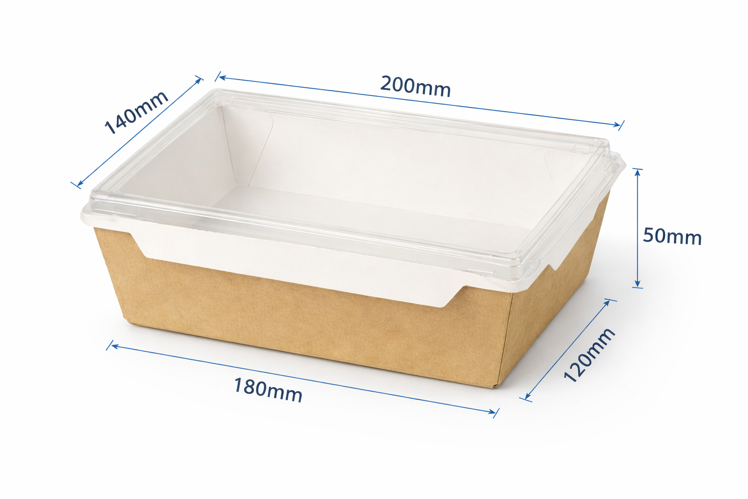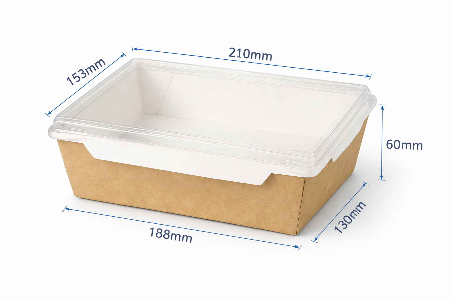 Khác với các loại hộp kín, Hộp Giấy Nắp Đậy Rời của chúng tôi sử dụng nắp nhựa trong suốt cao cấp. Điều này cho phép khách hàng nhìn thấy toàn bộ sự bắt mắt của salad, sushi hay trái cây bên trong. Nắp rời được thiết kế chuẩn xác, vừa khít với đáy hộp, tạo nên một khối thống nhất cứng cáp, bảo vệ thực phẩm an toàn tuyệt đối khi vận chuyển qua những đoạn đường xóc.